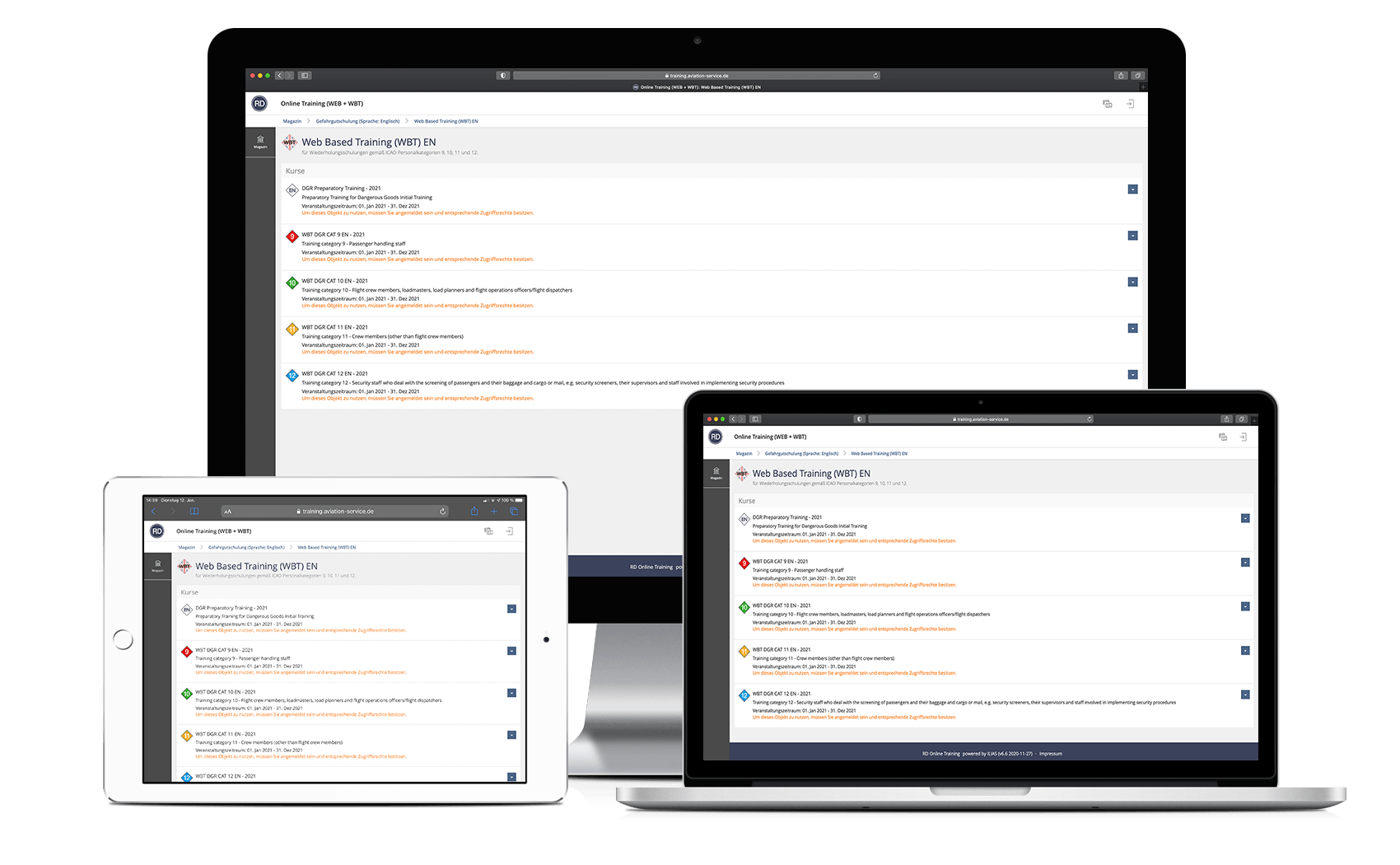 Preparatory trainings for dangerous goods initial training are available online as Web Based Training (WBT).